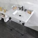Kingston Brass LMS3030MASQ5 Pemberton 30′ Carrara Marble Console Sink with Acrylic Legs (8-Inch, 3-Hole), Carrara Marble White/Oil Rubbed Bronze